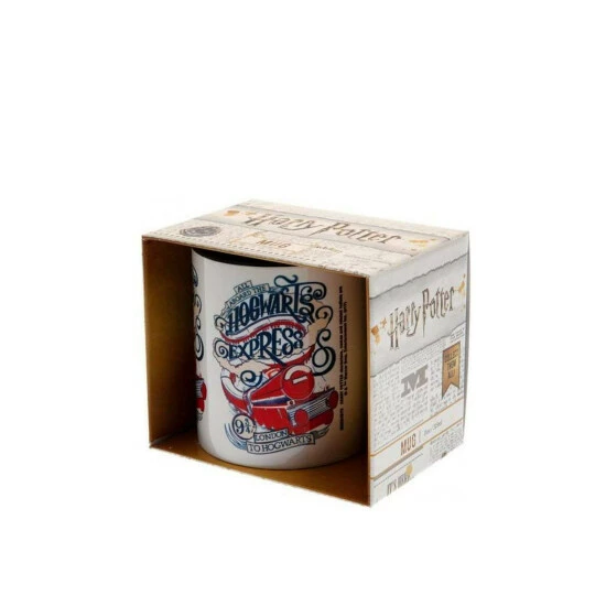 100% Ceramic. Height: 12cm. Width: 10.5cm. Length: 8.7mm. Design: Hogwarts Express, Inner Two Tone, Text. Capacity: 325ml. Packaging: Boxed. 100% Officially Licensed.