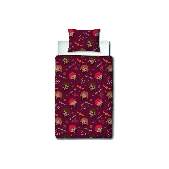 Material: Polycotton. Contents: Duvet Cover, Pillowcase. Design: Hogwarts, Owl, Repeat Print. Characters: Harry, Hermione, Ron. 100% Officially Licensed. Reversible.