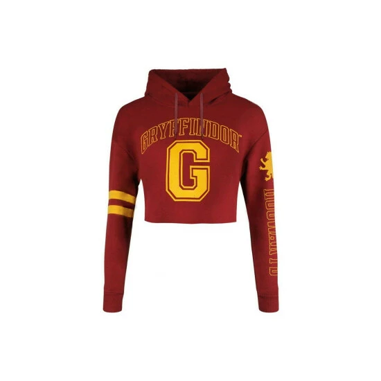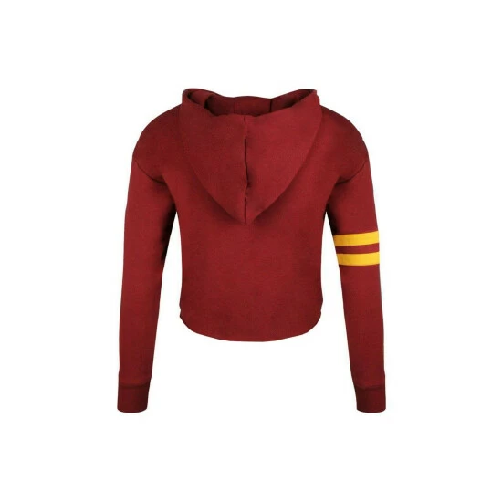 Design: Gryffindor, Hogwarts, Logo, Stripe Detail. Cropped. Hood Features: Drawstring. Cuff: Fitted. Neckline: Hooded. Sleeve-Type: Long-Sleeved. Fastening: Pull Over. 100% Officially Licensed.