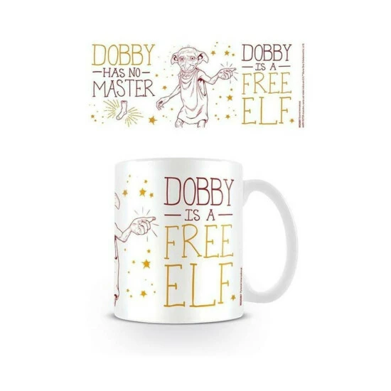 100% Ceramic. Height: 12cm. Width: 10.5cm. Length: 9cm. Characters: Dobby. Design: Stars, Text. Capacity: 325ml. Packaging: Boxed. 100% Officially Licensed.