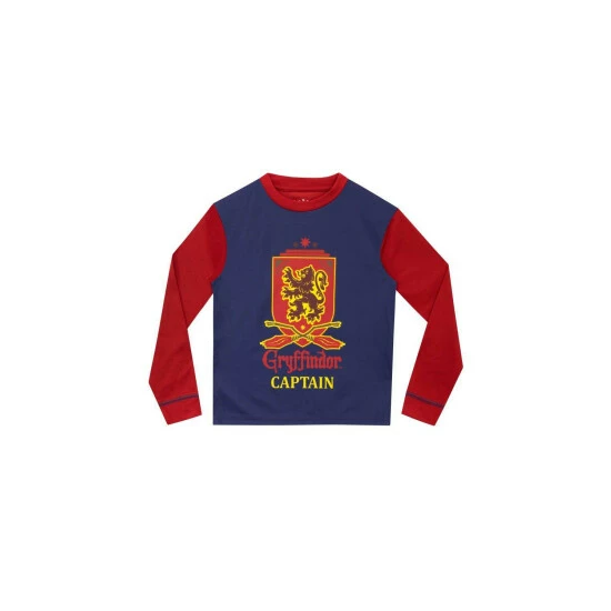 Super soft Harry Potter long sleeve pyjama set from Warner Bros. Hogwarts red and navy sleepwear set with an enchanting Gryffindor badge print. Complete with an elasticated waist and cuffs for cosyness. Soft to wear and easy to care.