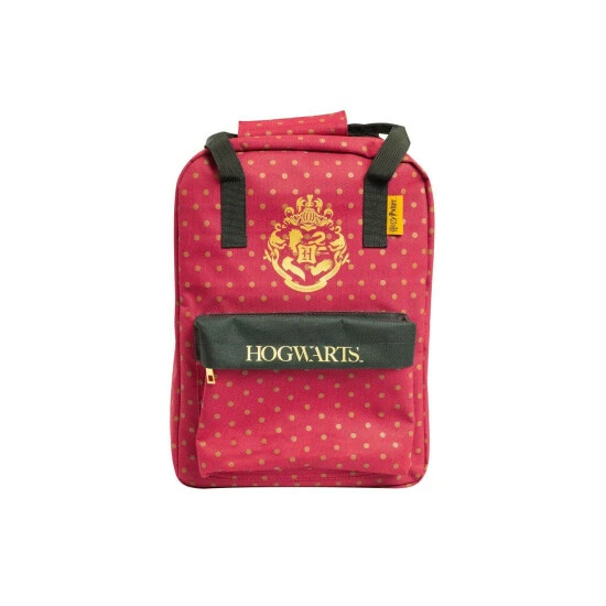 100% Polyester. Height: 40cm. Length: 28cm. Width: 19cm. Design: Dotted, Foil, Hogwarts Crest, Logo, Text. Fastening: Two Way Zip. Adjustable Shoulder Strap, All-Over Print, Branded Tab, Dual Carry Strap, Metal Zip Pull, Padded Straps. Compartments: 1 Main Compartment. Pockets: 1 Front Pocket. Capacity: 21.3L. 100% Officially Licensed.
