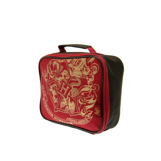 Material: Polyester. Height: 23cm. Length: 19cm. Width: 6cm. Compartments: 1 Main Compartment, Zipped Compartment. Design: Hogwarts Crest. Carry Handle, Insulated, Name Tag. 100% Officially Licensed. Packaging: Swing Tag.