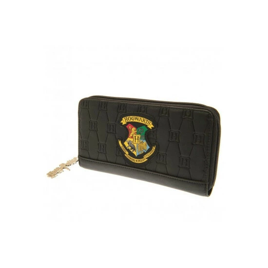 Width: 19cm. Height: 10cm. Length: 2cm. Design: Embossed, Hogwarts Crest. Compartments: Multiple Card Slots, Multiple Compartments. Pockets: Inside Pocket, Zip. Fastening: Zip. 100% Officially Licensed. Branded Zip Pull, Swing Tag.
