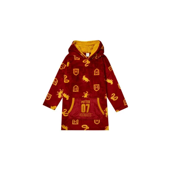 Kids Harry Potter Lounge Hoodie. This super soft hoody is burgundy and features an all over motif of Hogwarts House animals and the letter ‘H’. Complete with a front pocket that reads ‘Potter 07 Hogwarts’ and a pointed hood. They’ll fit right in at Hogwarts this winter in this cosy lounge wear!