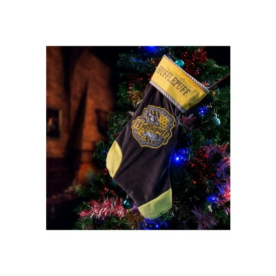 100% Polyester. Turn-down cuff at top. Lined. Hanging tab. House crest patch sewn to stocking. Border detail about the cuff. 100% Officially licensed.