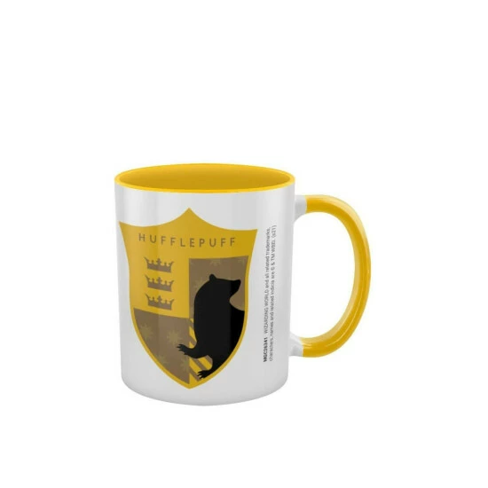 Material: Ceramic. Length: 12cm. Height: 10.5cm. Width: 8.7cm. Contrast Handle. Design: Hogwarts, Hufflepuff, Inner Two Tone, Quote. Capacity: 325ml. 100% Officially Licensed.