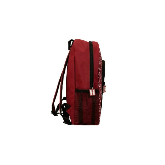 Approximate Dimensions: H: 35 x W: 30 x D: 11 cm. Official licensed Harry Potter merchandise. A burgundy red and black backpack which will have your Hogwarts student winning House points! This zipped rucksack has a Hogwarts print with all the house badges, complete with mesh side pockets and a front zipped pocket.