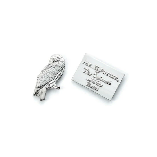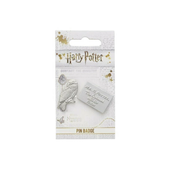 Material: Metal. Length: 20mm. Width: 30mm. Fastening: Stud. Design: Letter, Owl. Characters: Hedwig. 100% Officially Licensed. Packaging: Backing Card.