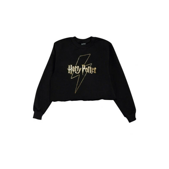 Material: 80% Cotton, 20% Polyester. Design: Foil, Lightning Bolt, Logo, Printed. Shoulder Taping. Cuff: Cotton Lycra Ribbed. Neckline: Crew Neck, Lycra Ribbed. Sleeve-Type: Long-Sleeved. Style: Cropped. Fastening: Pull Over. 100% Officially Licensed.