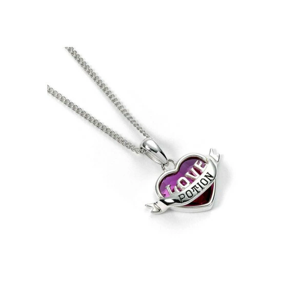 Material: Metal. Length: 11mm. Width: 16mm. Chain Length: 46cm. Design: Love Potion. Embellishments: Crystal. Finish: Silver Painted. 100% Officially Licensed. Packaging: Gift Box.