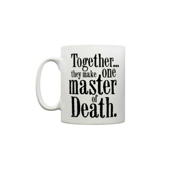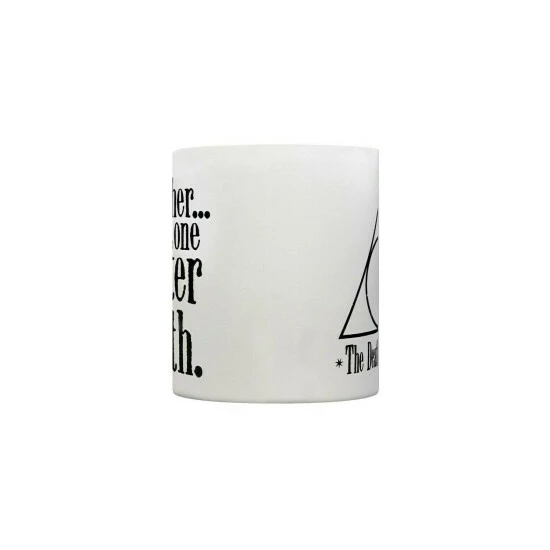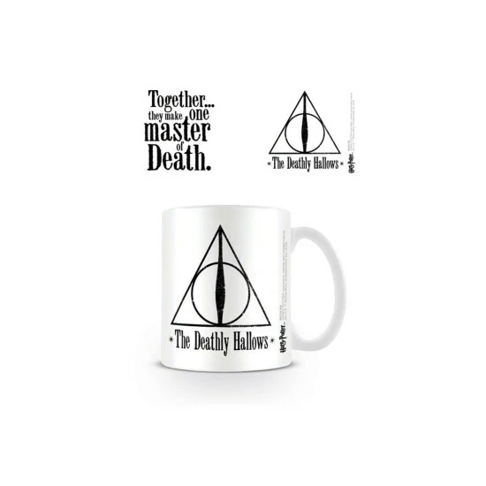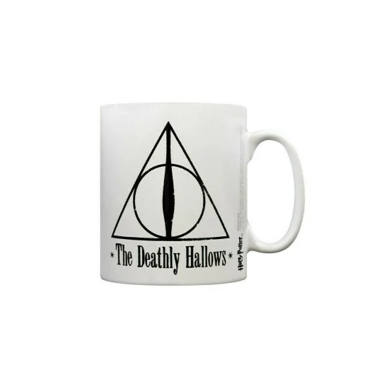 100% Ceramic. Height: 12cm. Width: 10.5cm. Depth: 9cm. Design: Deathly Hallows, Logo, Text. Capacity: 325ml. Packaging: Boxed. 100% Officially Licensed.