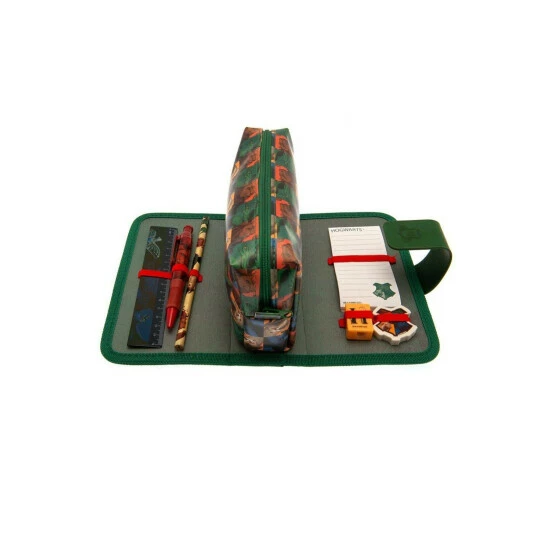 Design: Hogwarts Houses. Fastening: Magnetic, Zip. Contents: 1 Eraser, 1 Notepad, 1 Pen, 1 Pencil, 1 Pencil Case, 1 Ruler, 1 Sharpener. Foldable. Length: 20cm. Height: 11cm. Width: 7cm. 100% Officially Licensed. Packaging: Swing Tag.