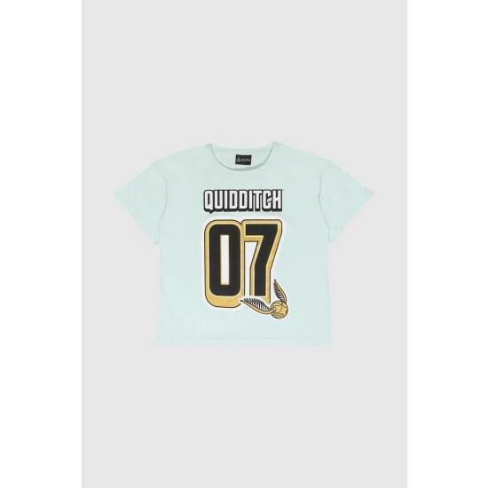 Harry Potter t-shirt from Popgear. This officially licensed Harry Potter t-shirt is crafted from cotton, comes in sky blue & features a quidditch 07 golden snitch design. This is the stylish way to show off your loyalty for Harry Potter & is perfect for girls whilst either outside or inside watching a film.