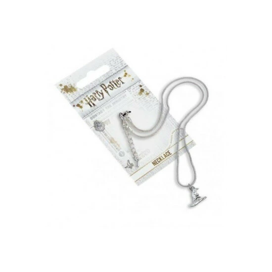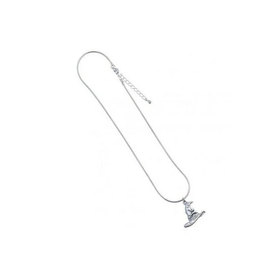 Necklace with Sorting Hat design. Silver plated. With snake chain. Official licensed product. Size: Length approximately 40cm. Charm approximately 1.5 x 1.5cm.