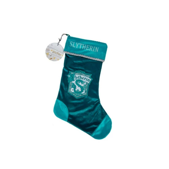 100% Polyester. Turn-down cuff at top. Lined. Hanging tab. House crest patch sewn to stocking. Border detail about the cuff. 100% Officially licensed.