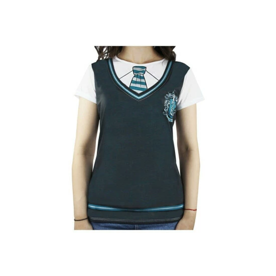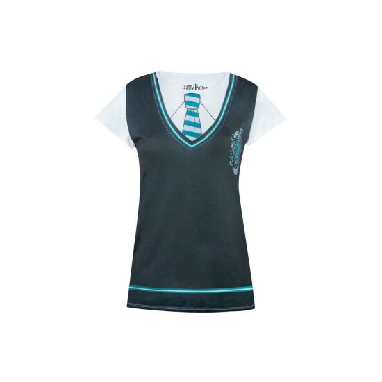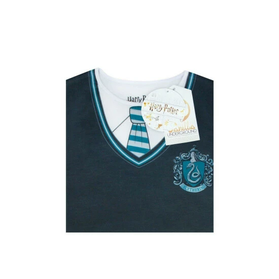 Womens Slytherin Costume T-Shirt from Harry Potter. Transform magically into a Slytherin student with this costume style t-shirt! Featuring a detailed, all over print across the front and a plain back. Offers a standard fit with short sleeves and crew neck detail. Perfect for Halloween parties or cosplay. Packed with authentic details. Officially licensed