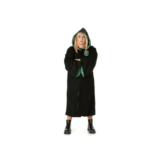 Material: 100% Polyester. Lining: Contrast. Design: Slytherin. Neckline: Hooded. Sleeve-Type: Long-Sleeved. Hood Features: Grown On Hood. Fastening: Button. 100% Officially Licensed.