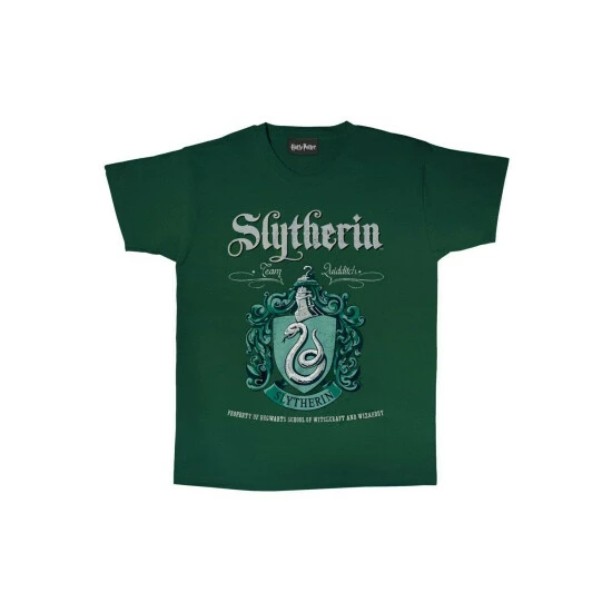 Material: Cotton. Design: Crest, House Colours, Slytherin, Text. Fit: Boyfriend. Neckline: Cutaway Collar. Sleeve-Type: Short-Sleeved. 100% Officially Licensed.