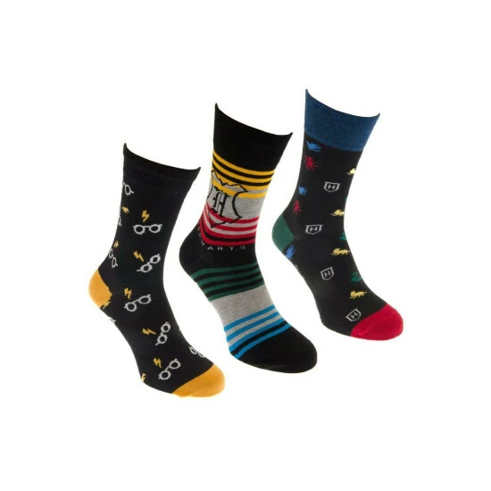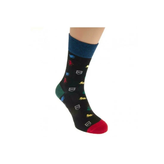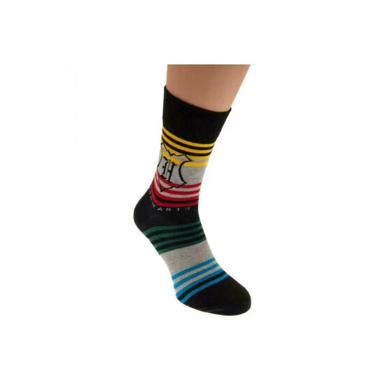 86% Cotton, 12% Polyester, 2% Elastane. Design: Crest, Gryffindor, Hufflepuff, Ravenclaw, Slytherin, Striped, Text. 100% Officially Licensed. Packaging: Gift Box.