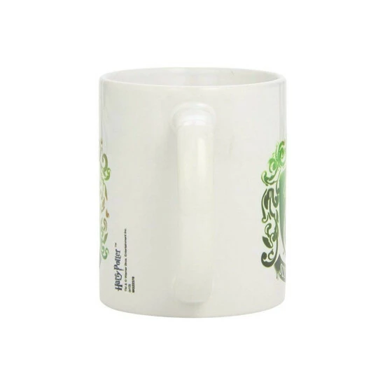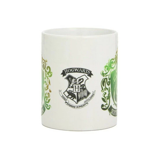 100% Ceramic. Height: 12cm. Width: 10.5cm. Depth: 9cm. Design: Hogwarts Crest, Logo, Slytherin, Stencil. Capacity: 325ml. Packaging: Boxed. 100% Officially Licensed.