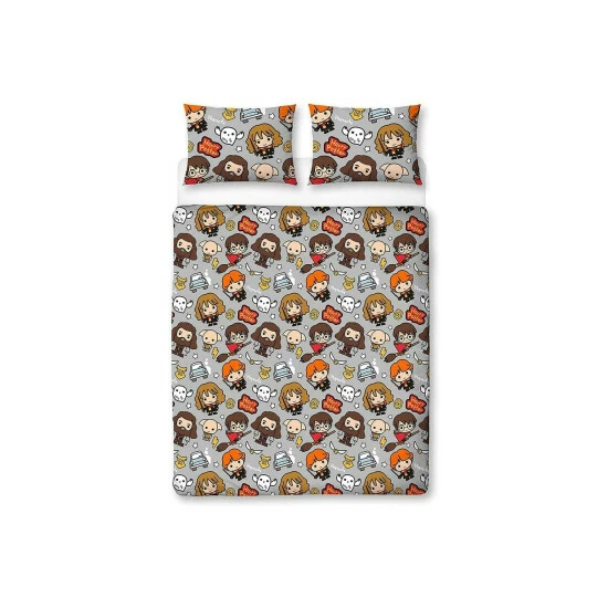 Material: Polyester. Contents: Duvet Cover, Pillowcase. Design: Logo, Printed. Characters: Dobby, Hagrid, Harry Potter, Hermione. 100% Officially Licensed. Reversible.