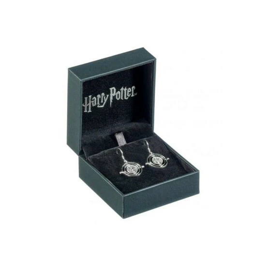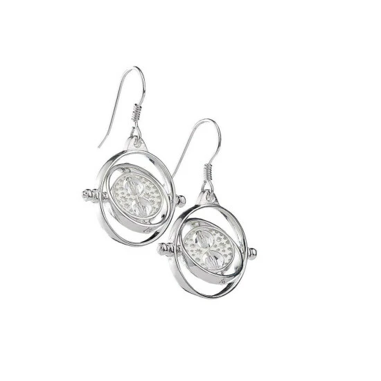 Height: 15mm. Width: 15mm. Fastening: Fish Hook. Design: Time Turner. Embellishments: Swarovski Crystals. Finish: Silver Painted. 100% Officially Licensed. Packaging: Gift Box.